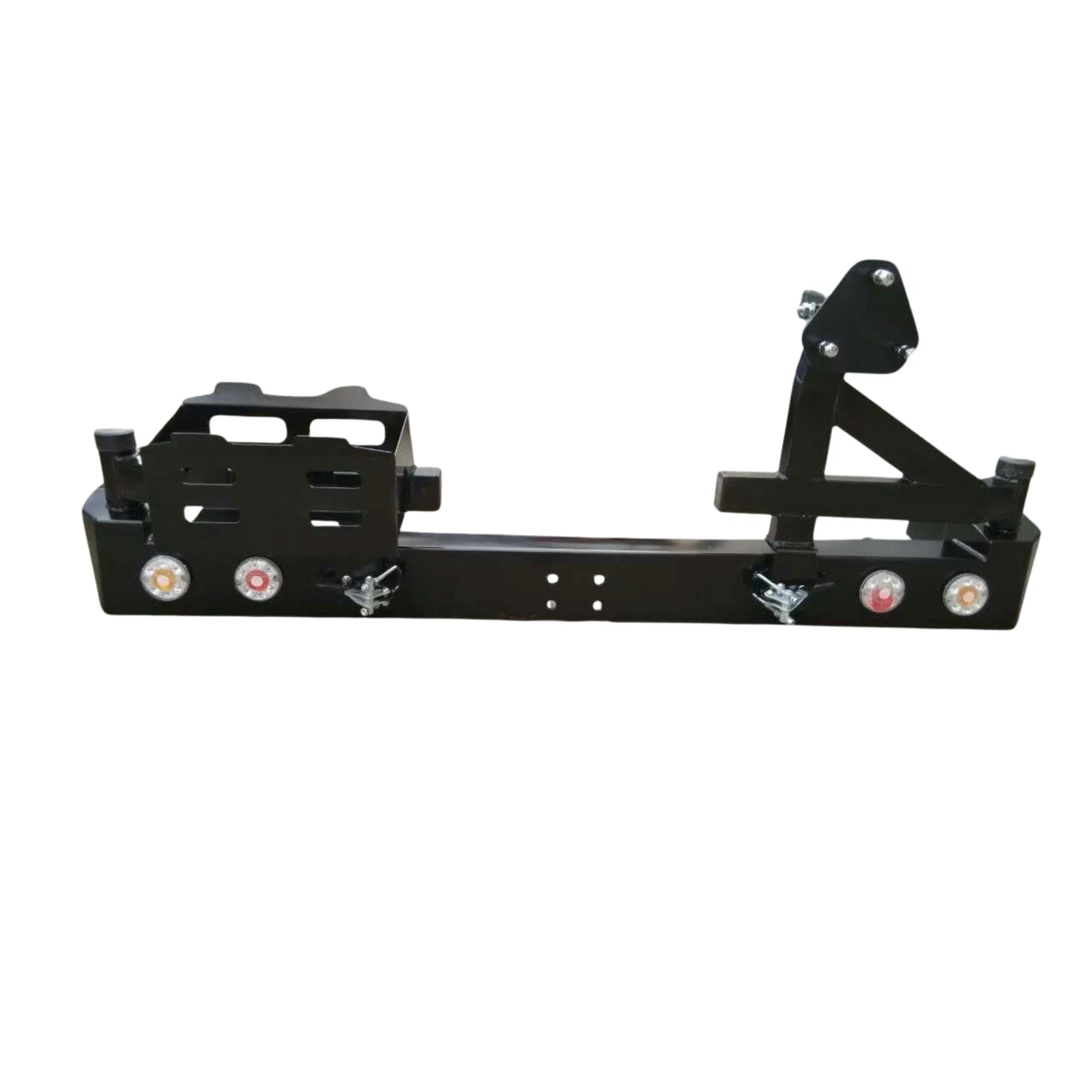 Description:Â Heavy-duty steel rear bumper with tire carrier and jerry can holder, imported stock.